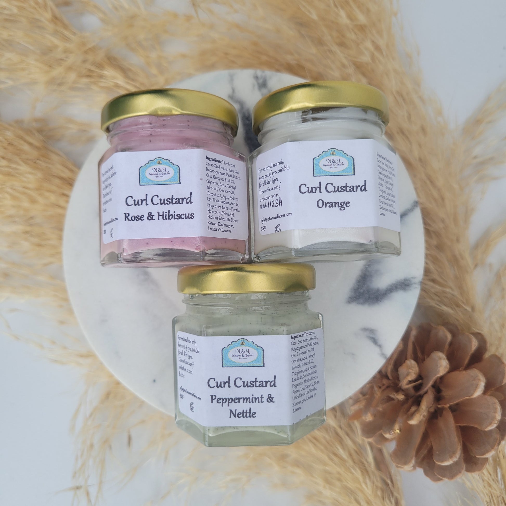 Our Curl Custard is a rich, creamy formula which can be applied to curly hair to add moisture and definition whilst reducing frizz, conditioning, and aiding in the styling of thick, frizzy, and curly hair.