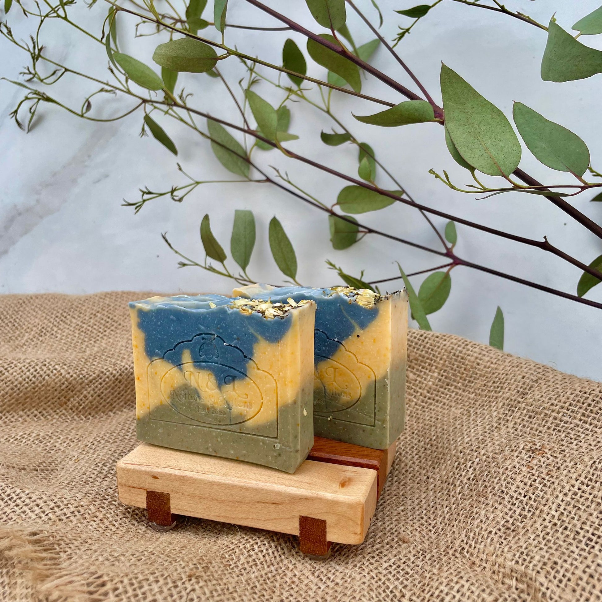 ❖ PLEASE NOTE: Our soaps are made by hand, please allow for minor colour & shape/size differences in your finished product. They will last a long time if kept dry. Please let the bar air dry between uses & keep it away from direct streams of water. One soap per order.