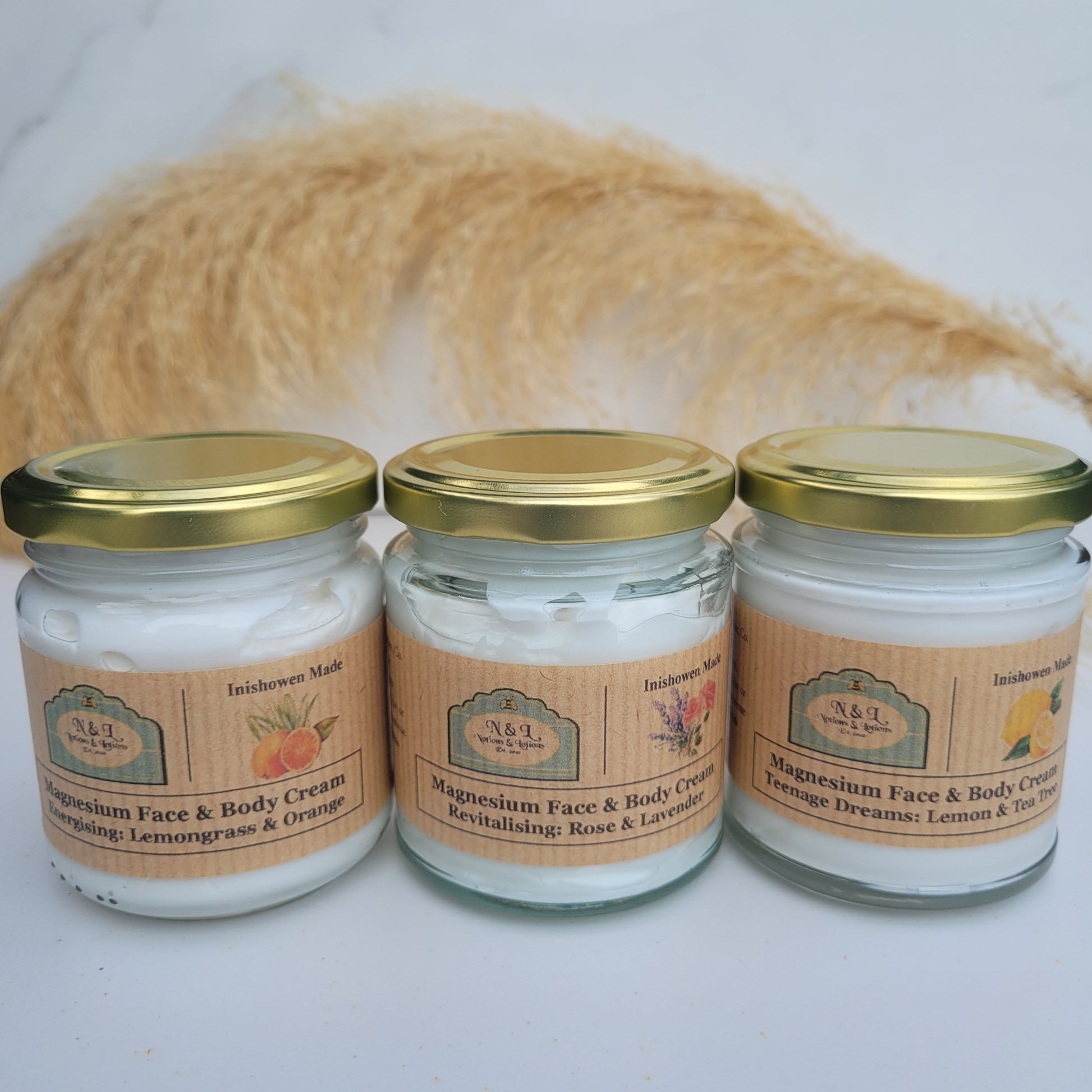 🍊 Lemongrass & Orange: This refreshing and energising cream blends the invigorating essence of lemongrass with the bright, uplifting scent of orange to help control excess oil and prevent breakouts. Experience the ultimate in skincare with our Lemongrass and Orange Magnesium Cream, and enjoy an energizing boost with every application.